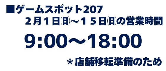 【ゲームスポット207】2月1日(日)~2月15日(日)の営業時間(追加)